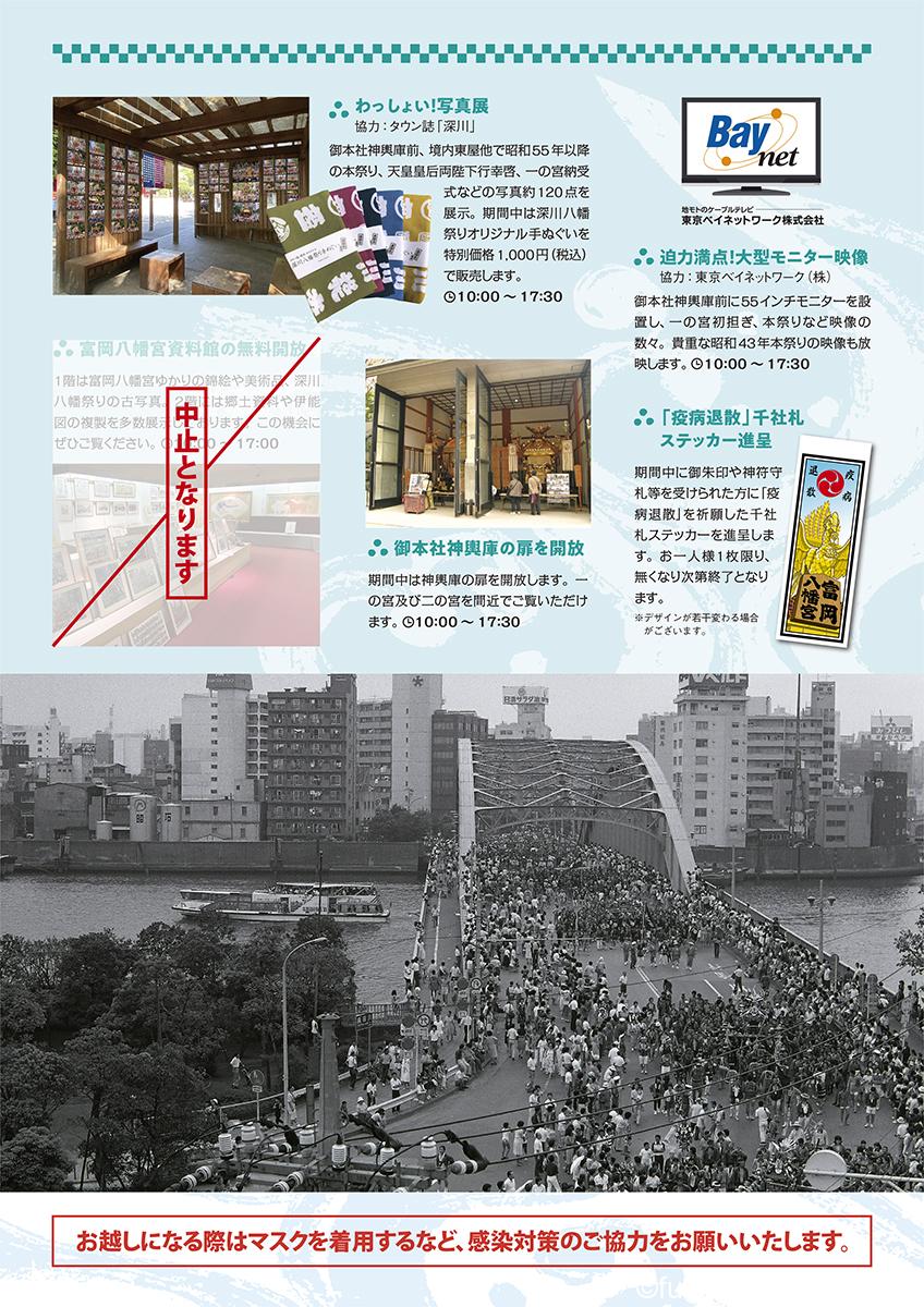 ※「深川」260号33ページに掲載した「令和3年富岡八幡宮 例祭奉納演芸」は中止となりました。http://www.tomiokahachimangu.or.jp/htmls/reisaiCancel.html