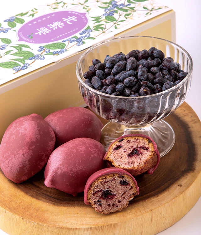 北海道厚真町産の果実ハスカップをふんだんに使用した「北紫雫」は、厚真町のふるさと納税の返礼品にも選出された注目の焼菓子。