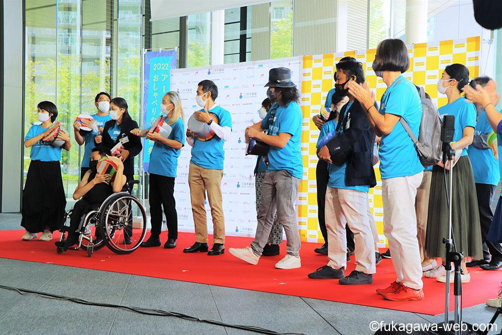 3年目を迎えた今年は豊洲でも開催することに。初日の今日、豊洲IHIビル1階アトリウムでは深川福住太鼓の和太鼓演奏を合図にキックオフイベントを開催。公募展「アートパラ深川大賞2022」の大賞と準大賞が発表されました。今年はなんと547点もの作品が寄せられたそうです!