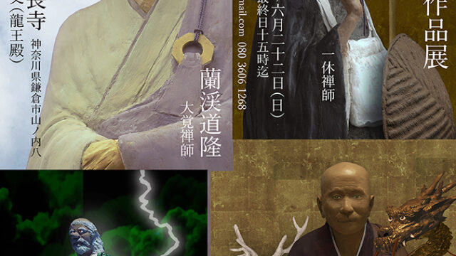 建長寺の開山でもある大覚禅師(蘭渓道隆)をはじめ、半増坊、一休禅師、仏光国師などの人形作品と写真作品を展示。写真作品は長辺150~200センチもある大型作品も展示します。