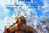 富岡八幡宮の境内で、神社の一年をテーマにした屋外写真展が7月10日(木)からスタート。展示場所は、再来年の御鎮座400年に向けて工事が進む「客殿」の仮囲い。横約8メートル、縦約3メートルの囲いが2面、合計27点の作品がインクジェットフィルムで大胆に彩られている。