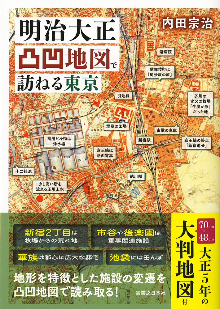 明治16~17年と大正5年の地図を実際の地形にあわせて立体化。地形の特徴を読み解きながら、町の歴史や変遷を紹介。大正5年の旧東京市エリア(東部下町と南部の一部除く)大判地図が付属。