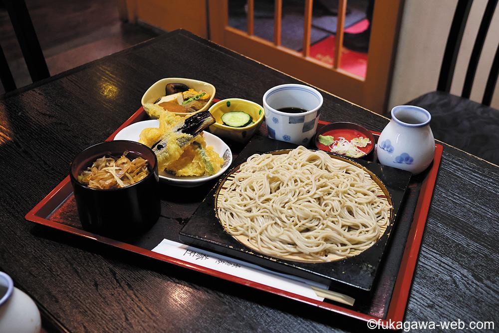 深川七福神めぐりのお休み処としても人気のそば処「長寿庵 蕎匠」。「深川御膳」は国産そば粉を使ったミニせいろ(温そば可)・季節の天ぷら・ミニ深川めし・小鉢・香物付きの豪華セット。1月中は数量限定で縁起の良い七福神コースタープレゼント中。