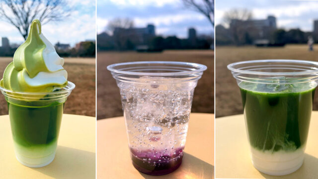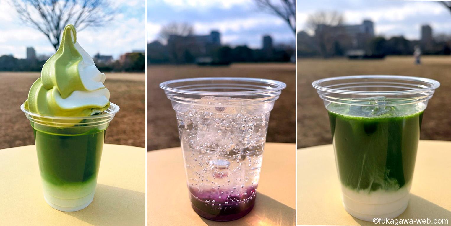 木場公園内のカフェ『KIBACO』に3月16日から春のドリンクメニューが登場!ソフトクリームたっぷりの「宇治抹茶フロート」「宇治抹茶ミルク」「ブルーベリースカッシュ」の3種。