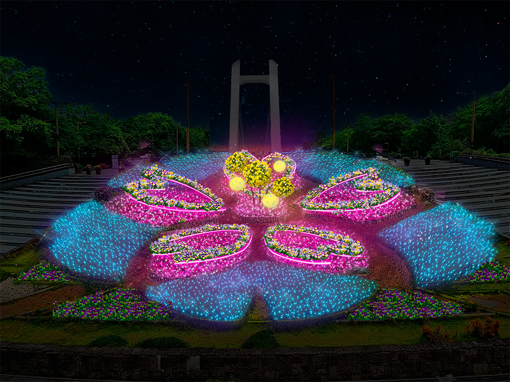 「花告げる木場の春しるべ」(噴水前花壇)ライトアップイメージ
