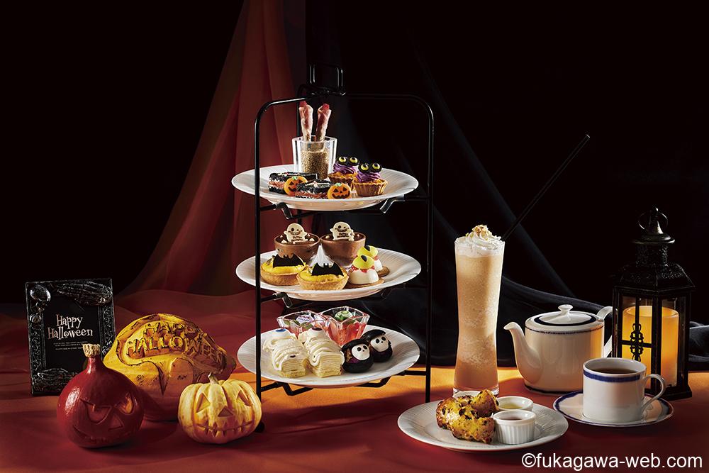 1階カフェ&バー「オールオール」にカボチャのゴーストキッシュやブラッディチーズケーキ、ミイラクレープなどハロウィンをイメージしたキュートなスイーツとサンド、フラッペなどのアフフタヌーンティが登場。11種のカフェはフリーで楽しめる。