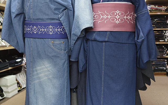 アイヌ文様の帯とデニム着物田巻屋創業100周年の節目としてオリジナルアイヌ文様を制作。看板商品のデニム着物との相性も良い角帯・半幅帯から、和...